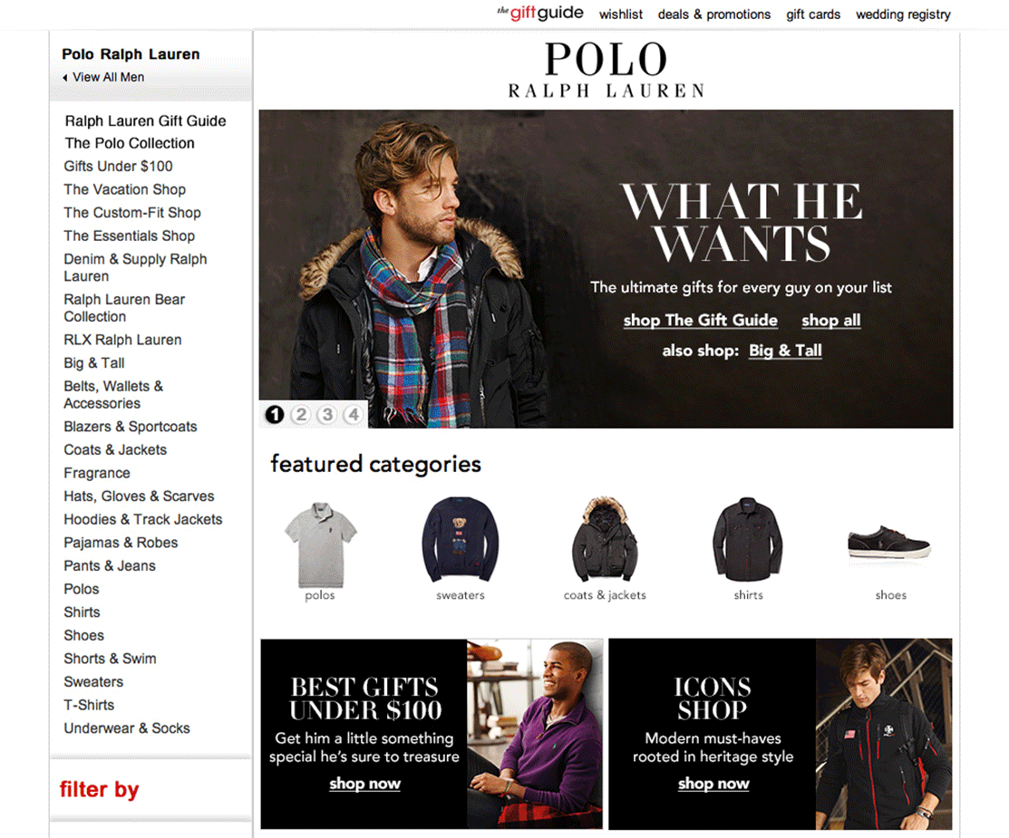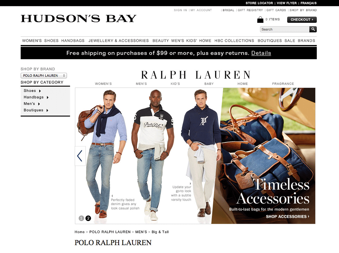 Digital design for Polo Ralph Lauren including brand shops, landing pages, and emails for secondary retailers like Macy’s and Belk.